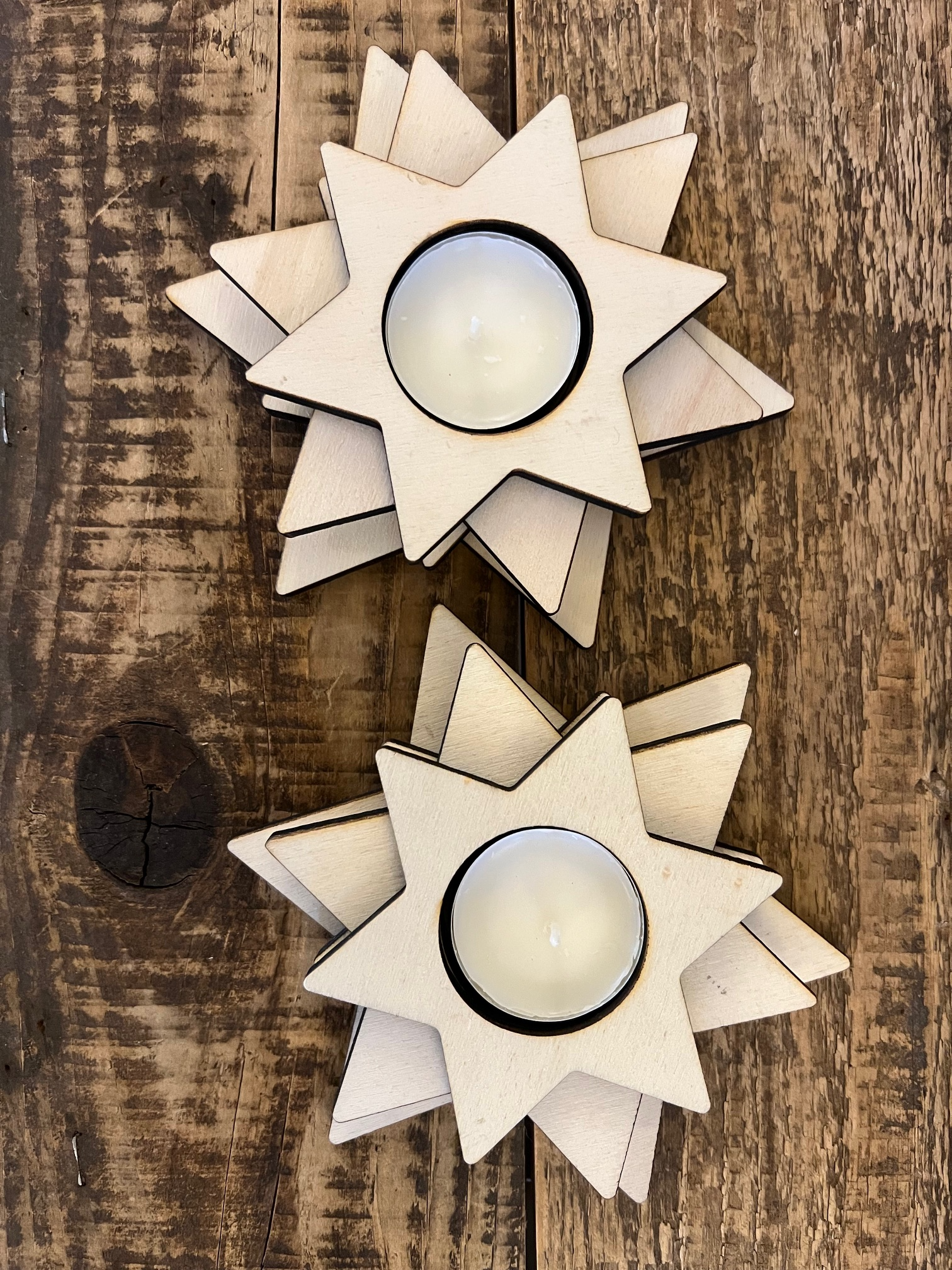 Telysholder stjerne produsert i 6 m.m. lys x-finér.